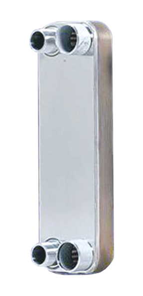 釬焊換熱器是以純銅為釬料,在真空釬焊爐中,將相鄰不銹鋼波紋板片焊接而成的板式換熱器。板片間形成通道,邊角上的角孔分布使兩種介質(zhì)在通道中交替流動(dòng),數(shù)目眾多的接觸點(diǎn)提供了很好的機(jī)械強(qiáng)度,接觸點(diǎn)和邊緣由銅釬焊密封,具有結(jié)構(gòu)緊湊,體積小,重量輕,傳熱效率高,制冷劑填充總量小,使用范圍廣,性價(jià)比高等優(yōu)點(diǎn)。